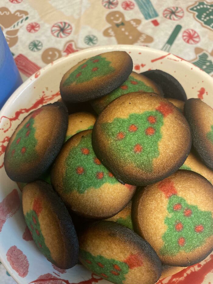 This bowl of overbaked Pillsbury cookies might look like a fail, but true fans of these instant dough treats know the truth. Every Pillsbury fan knows that these sugar cookies taste absolutely delicious when they’re a little crispy on the outside. It adds a little crunch to an otherwise delightful Christmas snack.